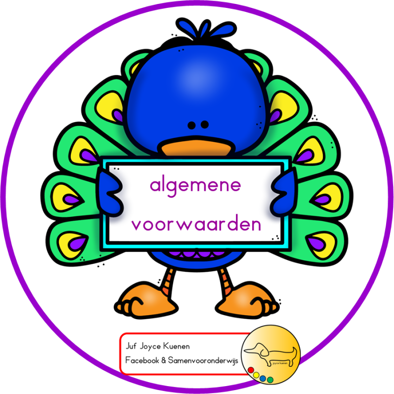 Alle materialen zijn digitale downloads in pdf-bestand. De materialen die ik verkoop, komen direct eenmalig beschikbaar, nadat je betaling is bevestigd. Voor alle materialen geldt, dat je het gebruik koopt voor één leerkracht, groep of klas. Het verspreiden van de materialen is dan ook verboden.