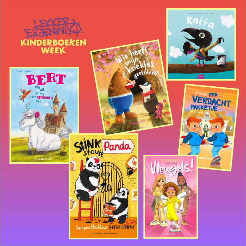 Het CNPB stelt elk jaar pakketen met thematitels samen die goed passen bij het thema van de Kinderboekenweek. Maar ik ben ook een tikkeltje eigenwijs en laat jullie daarom graag kennismaken met een zestal recent verschenen boeken die prima passen het thema, maar niet door de CPNB zijn geselecteerd. Van een eigenwijs klein raafje dat niet naar zijn ouders luistert omdat hij liever zichzelf wil zijn tot een mopperende beer die zijn beste vriendjes ervan verdenkt dat ze stiekem zijn koekjes hebben gestolen. Van een mopperende eenhoorn die geen eenhoorn wil zijn en een hekel heeft aan roze glitter, tot een panda die veel liever stout dan schattig is. En van een onverstandige tweeling die op een spannend onderzoek uitgaat, tot een elf jarige meisje dat stiekem het huis uit sluipt om te oefenen voor een modeshow...