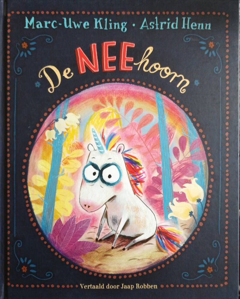 Van de hand van Marc-Uwe King, met illustraties van Astrid Henn, verscheen het boek “De NEEhoorn” (uitgeverij Volt). De NEEhoorn is niet een typisch prentenboek, want het telt 48 pagina’s met behoorlijk wat tekst en hangt een beetje tussen een prentenboek en een voorleesboek in. In de NEEhoorn wordt een mooie eenhoorn baby-eenhoorn geboren in de mierzoete en roze wereld van de eenhoorns, het Heerlijke Hartenwoud, waar de eenhoorns op rijm praten, de zon altijd schijnt en waar iedereen lief, vrolijk en vega is. De baby-eenhoorn is snoezelig, poezelig zoet, maar voelt zich niet thuis in de vrolijke wereld van de eenhoorns. Hij is chagrijnig en zegt overal NEE op, vandaar dat hij al snel NEEhoorn wordt genoemd.