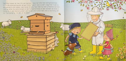 Ben je op zoek naar een leuk voorleesboek over bijen, dan is wellicht 'Fien & Teun en de bijzondere bijtjes' leuk om aan te schaffen. Het verhaal speelt zich weliswaar af in de lente, maar met enige creativiteit zou je dit kunnen overslaan tijdens het voorlezen. In dit boek gaan Fien en Teun logeren bij opa en oma, waar op de boerderij een meneer rondloopt in een vreemd wit pak. De meneer is een imker en hij leert Fien en Teun dat bijen heel bijzondere bijen diertjes zijn, die honing maken en zorgen dat de aardbeien groeien.