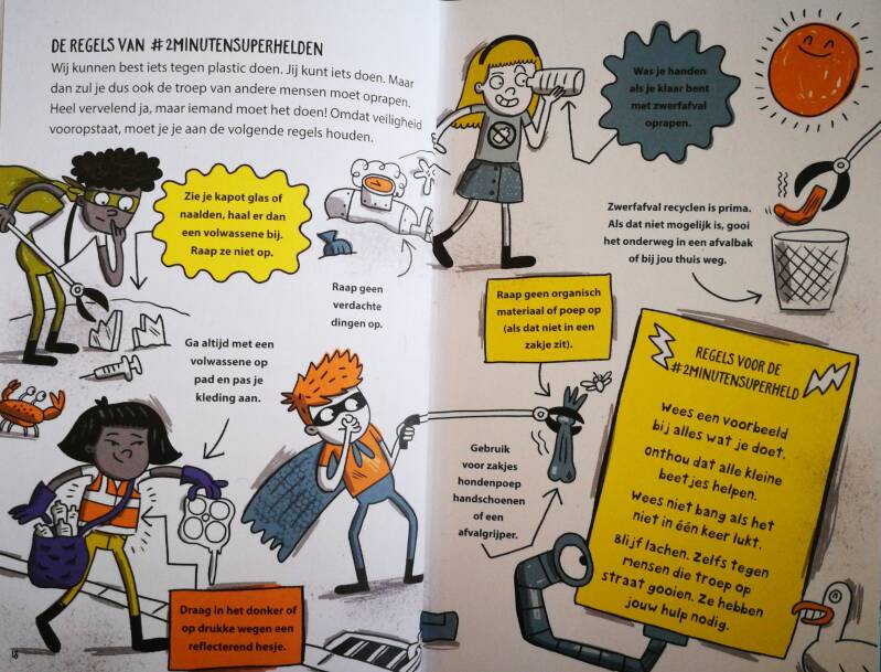 De vorm van het boek zal kinderen zeker aanspreken. De teksten zijn geschikt voor kinderen vanaf 8 jaar en de illustraties van Tim Wesson zijn grappig en aansprekend. "Samen Plastic de Baas" is verschenen bij uitgeverij De Fontein. Via deze link kun je een leerkrachtenpakket aanvragen met een leuke #2minutensuperheld-poster erin.