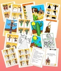 Een uitgebreide bundel van 60 pagina's rond de Native Amerikaanse volkeren (indianen). Met 44 woordkaarten, 3 voorbeeldkaarten voor de letterblokjes, 6x patronen leggen met teldopjes, schaduwmemory, bouw een totempaal, telkaartjes tot en met 12 met een kleikaart, 2 spiegeltekeningen, 20 woordkaarten met rekenkundige begrippen, kleurplaat met schrijfpatronen, 3 kleikaarten, 4 puzzel-dobbel-kleurplaten en een memory spel. Kortom, een bundel met 64 woordkaarten en met 9 spel verschillende activiteiten.