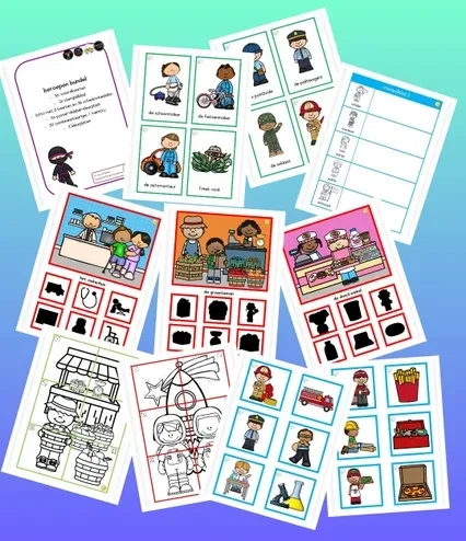 Een bundel vol beroepen, die aansluit bij het thema van de Kinderboekenweek 2021: worden wat je wilt. Inhoud: - 56 woordkaarten met uiteenlopende beroepen: van politieagent tot aan superheld en van clown tot aan ambulancechauffeur - 2 stempelbladen - een lottospel met 6 beroepen en 36 schaduwbeelden - 6 puzzel-dobbel-kleurplaten - 30 combineerkaarten, waar je ook memory mee kunt spelen - 3 kleurplaten In totaal telt deze bundel 40 pagina's!