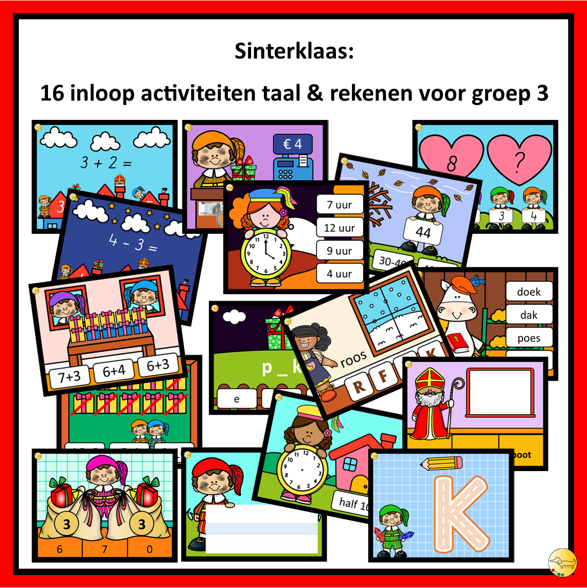 In deze bundel vind je 16 inloop activiteiten voor groep 3 rond taal en rekenen in het thema Sinterklaas.. In totaal 352 opdrachtkaartjes die in de gekleurde doosje passen.
