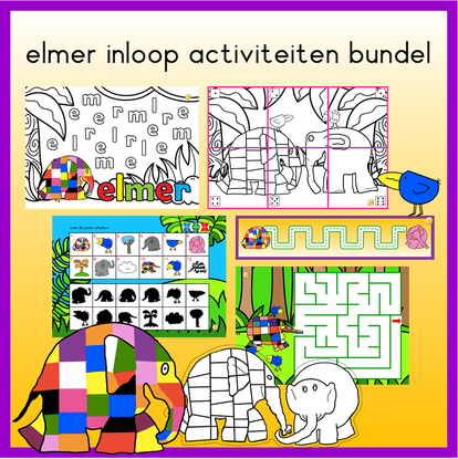 Ben je ook zo dol op de vrolijke kleurtjes olifant Elmer? Met deze bundel kun je diverse activiteiten organiseren in de kleutergroep rondom Elmer en zijn vriendjes. Inhoud: 24 schrijfpatroonkaarten 6x puzzel-dobbel-kleurplaat 6 loco kaarten 5 prikkaarten om in te kleuren 6 doolhoven 3x kleur de letters In de bundel vind je ook een link naar meer gratis activiteiten rondom Elmer.